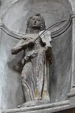 - ↑ A Gasparo Cairano se le pagan nueve liras por cada estatua de los Apóstoles, por un total de 108 liras, mientras que Tamagnino recibe 106 liras por los doce Ángeles y los cinco relieves. Véase la transcripción de Guerrini 1930, pp. 209-210, del documento perdido en Archivio Storico di Santa Maria dei Miracoli, cart. A, fasc. 3.