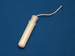 Un tampón es un producto de gestión menstrual que se coloca en el canal vaginal para absorber la menstruación directamente debajo del cérvix. Se extrae del cuerpo mediante un cordón. Tiene forma de tubo, con un núcleo comprimido de material absorbente, normalmente algodón y rayón, en ocasiones recubierto por una malla de material sintético para evitar el desprendimiento de fibras dentro del cuerpo.[1] Se trata de productos desechables y las dos versiones predominantes son los tampones digitales, que se colocan con los dedos, y los modelos con aplicador.[2] A diferencia de absorbentes externos como toallas sanitarias, permiten bañarse o nadar mientras se utilizan.