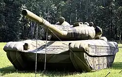 El ejército de los Estados Unidos ha desarrollado un tanque de guerra falso moderno. Imita el tanque M1 Abrams no solo en apariencia, sino también en su firma de calor, para que parezca real a los detectores infrarrojos. Uno de estos señuelos puede recibir fuego del enemigo y aún parecer estar operativo, lo que retrasa al enemigo hasta una hora, ya que se ven obligados a destruir el señuelo. Estos señuelos M1 cuestan solo $3,300,[16] en comparación con $4,35 millones para un M1 real.[17] El señuelo también es práctico: cuando está desarmado, pesa solo 50 libras (22,7 kg) y tiene aproximadamente el mismo tamaño que una bolsa de lona. Su generador del tamaño aproximado de 12 pulgadas (30,5 cm) facilita el inflado, de forma que dos personas pueden montar el señuelo en pocos minutos.[16] De vez en cuando, los tanques reales llevan un maniquí a bordo, para desplegar cuando sea necesario.[18]