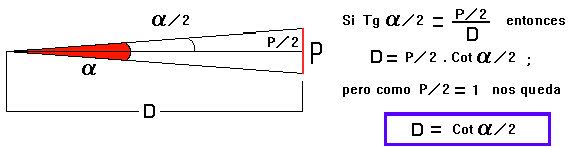 Consiste en la resolución de un triángulo rectángulo angosto del que se mide el ángulo más agudo; el cateto menor es conocido ya que es la mitad de una mira (llamada paraláctica), horizontal fabricada en un material sumamente estable, generalmente Invar, de dos metros de largo (se eligió esta longitud de 2,00 m porque la mitad es 1,00 m lo que luego facilita el cálculo); y el cateto mayor es la distancia (D) que queremos averiguar, la cual se deberá calcular.