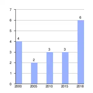 | Gráfica de evolución demográfica de Taraño[2] entre 2000 y 2018 |