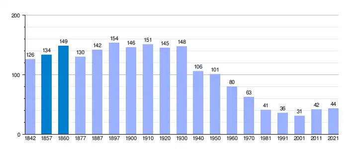 | Gráfica de evolución demográfica de Taragudo[5] entre 1842 y 2021 |