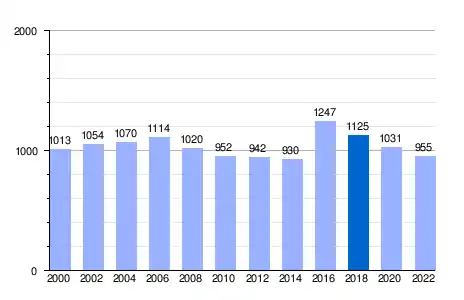 | Gráfica de evolución demográfica de Tarambana entre 2000 y 2022 |