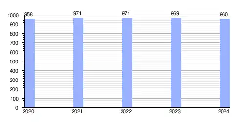 Hasta 2024 la población era de 960 habitantes,[2] con una densidad de población de 78,04 hab/km².[2]