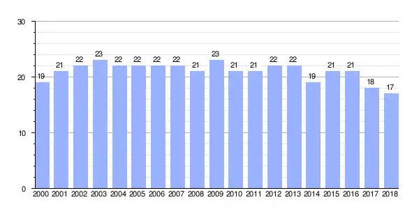 | Gráfica de evolución demográfica de Tarroeira entre 2000 y 2018 |