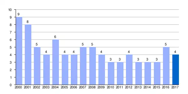 | Gráfica de evolución demográfica de Tartalés d Cilla entre 2000 y 2017 |