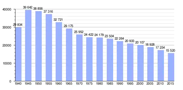 | Gráfica de evolución demográfica de Tarumizu entre 1940 y 2015 |
