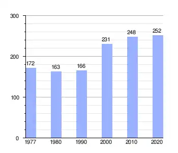 | Gráfica de evolución de Tasiusaq entre 1977 y 2020 |