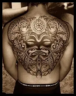 El tatuaje de Polinesia, practicado históricamente y hoy en día difundido por todo el mundo, tiene varios orígenes. De hecho, el arte del tatuaje está intrínsecamente vinculado a la cultura polinesia. Traduce «la parte más profunda del hombre».[1] En las Islas Marquesas, por ejemplo, «es la piel la que hace al Enata (hombre), lo que le hace humano, mortal y no simplemente espiritual».[1] Es su imagen y la expresión de su identidad las que reflejan el pasado, y revelan el futuro de un linaje que se remonta a los albores del tiempo. El tatuaje había sido transmitido por los ancianos, ancestros divinizados, y uno tenía que ser digno de él, físicamente preparado para ello. Desviar este arte y sus motivos, de su destino original, era arriesgar su coraje. La historia del tatuaje es muy difícil de rastrear, porque incluso si se trata de una práctica ancestral, todavía no se puede localizar con precisión en el tiempo.