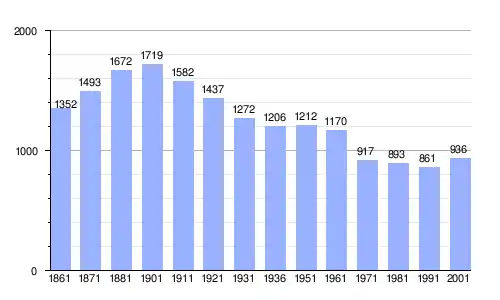 | Gráfica de evolución demográfica de Tavigliano entre 1861 y 2001 |