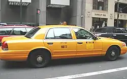 La Comisión de Taxis y Limosinas de la Ciudad de Nueva York ha establecido estrictos requerimientos para el color de los taxis de medalla desde fines de los años 1960.[92] De acuerdo con las "Normas de la Ciudad de Nueva York", el exterior del vehículo debe estar pintado de amarillo taxi (Dupont M6284 o su equivalente), excepto para sus adornos. Ejemplos del color de la pintura y el tono deben ser enviados a la comisión para su aprobación.[93][94] El código de pintura especificado M6284 es actualmente un código de la Ford para el amarillo de buses escolares.[95]