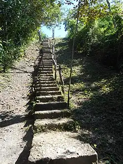 - ↑ El conquistador Bernal Díaz del Castillo llamó la ciudad Tayasal, aparentemente una derivación de las palabras mayas que significan el lugar de los Itzá. El propio rey itzá Canek se refirió a la ciudad con el nombre de «Nojpetén» cuando habló con los españoles en 1698.[2] Nojpetén, viene del itzá noj peten y significa «gran isla».[3]
