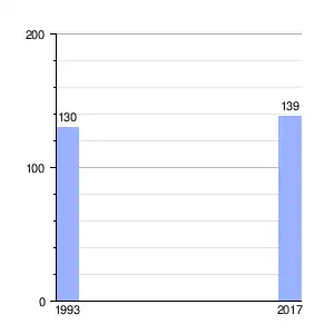 | Gráfica de evolución demográfica de Tazajeras entre 1993 y 2017 |