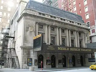 Cuando la Organización Shubert decidió deshacerse de la mayoría de sus teatros de Chicago, el edificio del Teatro Blackstone se ofreció a la Universidad DePaul. La Escuela de Teatro comenzó a actuar oficialmente en Blackstone el 21 de marzo de 1989, con una producción de El misántropo de Molière. En 1992, Harold y Merle Reskin hicieron una donación considerable a la Escuela de Teatro, y el 20 de noviembre, el teatro pasó a llamarse Teatro Merle Reskin. Merle Reskin había pasado cinco años como actriz profesional, interpretando a la Ensign Janet MacGregor en South Pacific en Broadway y apareciendo con Etta Moten. Abandonó su carrera al casarse con Reskin en 1955; sin embargo, pasó treinta años como Audicionista Regional del Medio Oeste de la American Academy of Dramatic Arts.[3] Además de The Theatre School, el edificio también es utilizado por otras organizaciones artísticas.[3]