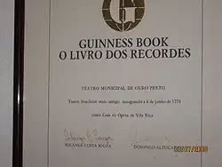 - ↑ a b Teatro Municipal, o mais antigo das Américas, é reaberto em Ouro Preto Ouropreto.com.br (en portugués)