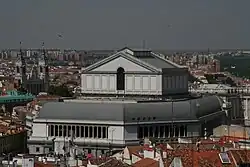 ![]() Fachada principal del Teatro Real, frente a la plaza de Oriente. | ||