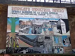 El 15 de mayo de 1955 se pone la primera piedra del recinto causando gran revuelo en los medios de comunicación regionales, así como nacionales de la época, de esta forma asisten al evento importantes autoridades, dirigentes, políticos y sindicales. Uno de los más importantes diarios de la época Las Noticias de Última Hora por el periodista Augusto Olivares, más conocido como el perro Olivares, en 18 de mayo de 1955 publicó: «LOS MINEROS DE LOTA LEVANTARAN UN GIGANTESCO EDIFICIO SINDICAL».