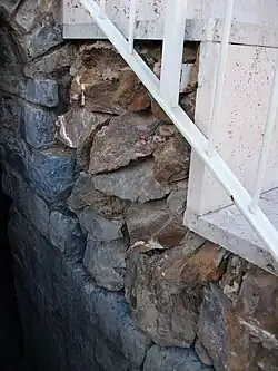 Además la construcción se vio muy facilitada por encontrarse la cantera en el mismo promontorio donde se ubicaba. La masa de las paredes y bóvedas se erigieron utilizando un mortero a base de cal y arena procedente del desbaste de la cantera que resulta ser de una gran dureza.[7]