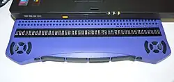 Un teclado braille es un dispositivo electrónico que, conectado a otro dispositivo, permite la introducción de código braille en este.