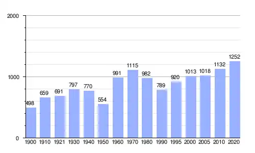 | Gráfica de evolución demográfica de Tecoluta 1.ª Sección entre 1900 y 2020 |