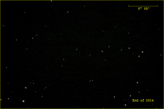 ![]() Movimiento propio de la estrella de Teegarden mostrando su posición con intervalos de dos años. | ||