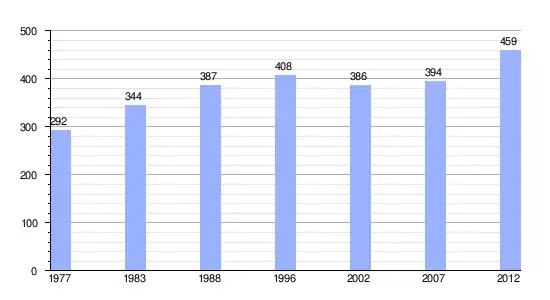 | Gráfica de evolución demográfica de Tefarerii entre 1977 y 2012 |