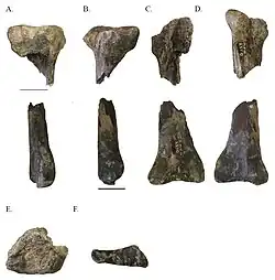 - ↑ Brownstein, C.D. «Theropod specimens from the Navesink Formation and their implications for the Diversity and Biogeography of Ornithomimosaurs and Tyrannosauroids on Appalachia». PeerJ Preprints 5: e3105v1. doi:10.7287/peerj.preprints.3105v1.