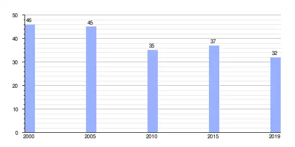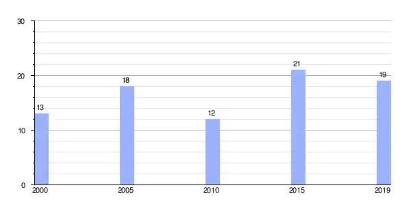 | Gráfica de evolución demográfica de Teijeira (parroquia) entre 2000 y 2019 |