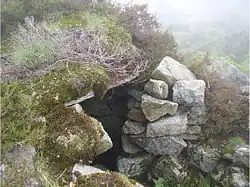 - Cabañas rectangulares de piedra y cubierta vegetal de escoba y paja, con el establo en la parte de abajo y el pajar arriba. Es la distribución de casa-establo de las pallozas descritas. Están construidas en terreno en desnivel, abriéndose un hueco en la parte alta de la pendiente para poder meter el heno. Se accede al piso de arriba por escalera de mano rústica; en algunos casos se ha construido un patín o escalera exterior.
