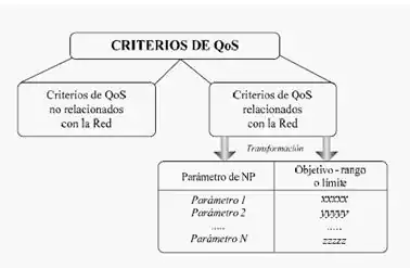 - Los criterios de QoS relacionados con la red son transformados en parámetros de NP. Son entonces asignados valores objetivos a estos parámetros para la calidad de servicio extremo a extremo;