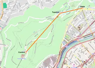 ![]() Trazado y estaciones del Teleférico de Santiago. | ||||||||||||||||||