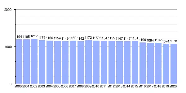 | Gráfica de evolución demográfica de Tella entre 2000 y 2020 |