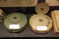 La Tellermine consistía en explosivos sellados dentro de un carcasa de chapa metálica y equipados por una espoleta accionada por presión, las minas Teller tenían un asa de transporte incorporada en el lateral. Como su nombre indica (teller es una palabra alemana que significa plato) las minas tenían formas de platos.