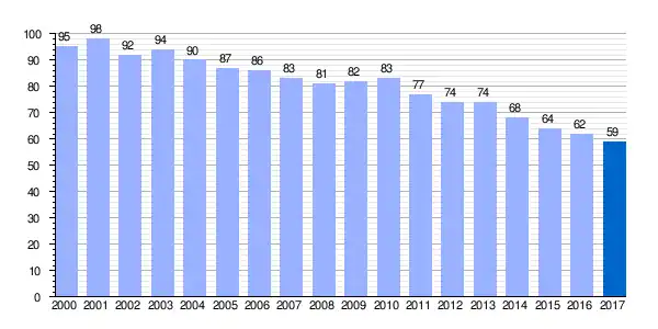 | Gráfica de evolución demográfica de Temiño entre 2000 y 2017 |