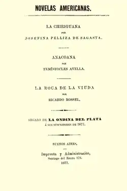 Vista del libro donde salió publicado su obra Anacoana.Anacoana, dentro del libro Novelas Americanas (1877).