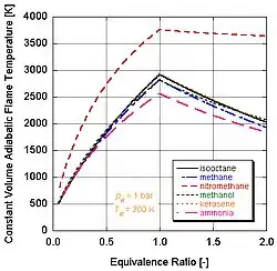 Diferentes combustibles con diferentes niveles de componentes de energía y molares tendrán diferentes temperaturas de llama adiabática.