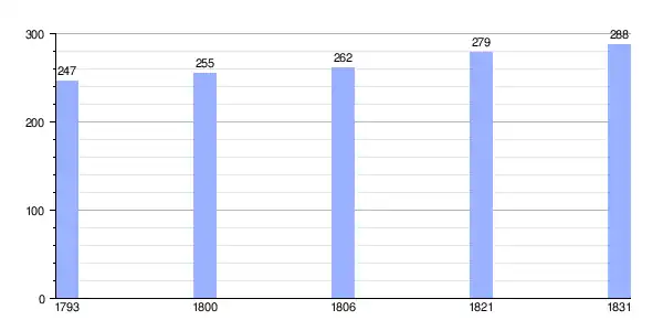 | Gráfica de evolución demográfica de Temple entre 1793 y 1831 |