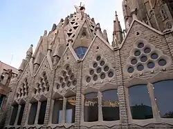 El Templo Expiatorio de la Sagrada Familia (en catalán: Temple Expiatori de la Sagrada Família), conocido simplemente como la Sagrada Familia, es una basílica católica de Barcelona (España), diseñada por el arquitecto Antoni Gaudí. Iniciada en 1882, todavía está en construcción. Es la obra maestra de Gaudí y el máximo exponente de la arquitectura modernista catalana. Es el monumento más visitado de España,[1] y es la iglesia más visitada de Europa tras la basílica de San Pedro del Vaticano.[2] Cuando esté finalizada, será la iglesia cristiana más alta del mundo.