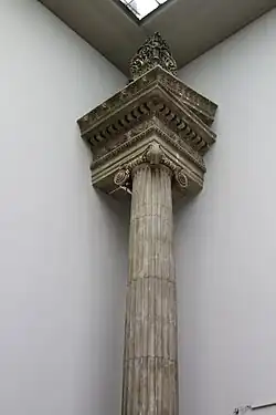 El pilar de la esquina izquierda y parte del entablamento , el tejado y la decoración del acroterio de la fachada han sido restaurados en el Museo de Pérgamo de Berlín.[2]