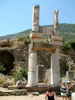 - ↑ a b c d e Scherrer, Peter, ed. (2000). «Ephesus. New Guide». by Österreiches Archäologisches Institut and Efes Müzesi Selçuk (en inglés) (Graphis Ltd): 92-93. ISBN 975-807-036-3.