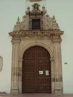 De construcción sencilla como la mayoría de los templos coloniales del norte de México, su planta es de una sola nave y carece de cúpula, así como una sola torre cuadrada de dos cuerpos; su fachada está formada por una portada que enmarca la puerta principal y formada por un arco de medio punto rodeado de jambas de cantera y por una columna cuadrada de cada lado que sostienen una cornisa sobre el conjunto, sobre dicha cornisa se encuentra la ventana del coro rodeada por guirnaldas de cantera y remates piramidales, la ventana se encuentra cerrada por una reja de hierro forjado y coronada la portada por un nicho que guarda la imagen de un santo que ha perdido su brazo derecho. Finalmente toda la fachada es rematada por un frontón triangular rodeado de molduras de cantera. La torre está formada por dos cuerpos de planta cuadrangular, con una luz en cada uno de sus lados formada por un arco de medio punto y rematada por una cúpula piramidal coronada por una cruz de cantera.