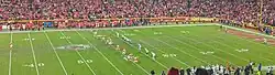 - Durante el cuarto periodo, el equipo que vaya perdiendo puede intentar una patada corta conocida como onside kick usando la formación previa a la formación que se usó a partir de esta temporada. Si la patada abandona la zona del equipo receptor sin ser tocada, el equipo receptor obtendrá la posesión del ovoide desde la yarda 20 del equipo que patea.