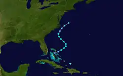 Una tormenta formada al sur de Cuba el 2 de octubre. Rodeó Cuba y tocó tierra en Gainesville, Florida como una tormenta tropical con vientos de 72 km/h. Salió al mar y golpeó la región oriental de la costa de Canadá. Se disipó el 8 de octubre.