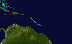 La tormenta tropical Martha se desarrolló en el suroeste del Mar Caribe el 21 de noviembre. Inicialmente, la tormenta se desarrolló con vientos sostenidos de 50 mph (85 km/h), omitiendo el estado de depresión tropical. Permaneció estacionario y rápidamente se intensificó hasta convertirse en un huracán. Martha alcanzó vientos máximos sostenidos de 90 mph (150 km/h) el 22 de noviembre. Posteriormente, Martha se debilitó y se desplazó hacia el sur. El 24 de noviembre, Martha tocó tierra en Veraguas , Panamá, como una fuerte tormenta tropical. Martha fue el único ciclón tropical registrado que tocó tierra en Panamá. El sistema se debilitó a una depresión tropical y se disipó sobre la tierra el 25 de noviembre.