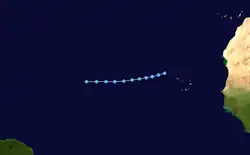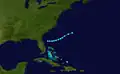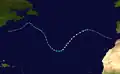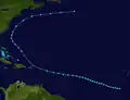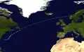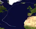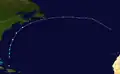 Una depresión subtropical se formó aproximadamente a 270 millas (435 km) al este-sureste de Cape Hatteras , Carolina del Norte, alrededor de las 12:00 UTC del 21 de septiembre. Seis horas después, el sistema se intensificó hasta convertirse en una tormenta subtropical mientras se dirigía hacia el este-noreste. La tormenta curvó hacia el noreste el 24 de septiembre y se transformó en huracán ese día, con vientos máximos sostenidos de 75 mph (120 km/h) y una presión barométrica mínima de 987 mbar (29,1 inHg). Poco después, el huracán comenzó a acelerarse, antes de disiparse a unas 200 millas (320 km) al sur de Terranova a principios del 26 de septiembre.
