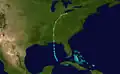En los estados vecinos de Misisipi, Alabama y Luisiana , 1.781 casas fueron destruidas y otras 6.000 sufrieron pérdidas. Aproximadamente 676 remolques fueron demolidos y 296 sufrieron graves impactos. Además, 124 pequeñas empresas fueron destruidas o sufrieron daños importantes. Camille se debilitó rápidamente después de tocar tierra el 18 de agosto y solo se convirtió en depresión tropical unas 24 horas después. Sin embargo, la tormenta mantuvo su intensidad mientras recurría hacia el este sobre el valle del río Ohio . Cayó fuertes lluvias mientras se acercaba al Océano Atlántico, especialmente en Virginia. Cayeron hasta 27 pulgadas (690 mm) en el centro oeste del condado de Nelson . Solo en el condado de Nelson, 133 puentes se derrumbaron, mientras que en algunos lugares comunidades enteras quedaron bajo el agua. Los ríos crecieron a cotas récord y causaron graves inundaciones. En el estado de Virginia y Virginia Occidental combinados, se estima que 349 viviendas fueron destruidas y 2.587 sufrieron algún grado de daño. Ochenta y tres remolques fueron demolidos y otros 71 sufrieron pérdidas importantes. Según se informa, 730 edificios agrícolas fueron destruidos y 535 sufrieron daños menores. Noventa y seis pequeñas empresas también resultaron gravemente dañadas o destruidas. A lo largo de su trayectoria, se registraron precipitaciones en varios otros estados, incluidos Arkansas , Delaware , Florida, Georgia , Illinois , Indiana ,Maryland , Nueva Jersey , Carolina del Norte , Ohio , Pensilvania , Carolina del Sur y Tennessee . Después de llegar al Atlántico, Camille volvió a fortalecerse hasta convertirse en una fuerte tormenta tropical con vientos de 70 mph (110 km/h) el 21 de agosto, pero fue absorbida por un frente frío al sur de Terranova el 22 de agosto. pérdidas estimadas en $ 1.42 mil millones, Camille fue considerado el huracán más costoso en la historia de los Estados Unidos en ese momento. Además, hubo 256 muertes en los Estados Unidos.