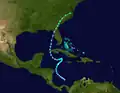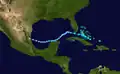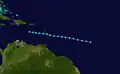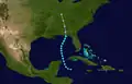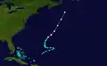 Una depresión tropical se desarrolló frente a la costa oeste de África el 7 de agosto, con características organizadas de convección y bandas. Un día después, la depresión pasó al sur de Cabo Verde mientras avanzaba por el Atlántico tropical. El 10 de agosto se intensificó a tormenta tropical, luego de que las tormentas eléctricas se concentraran más. Sin embargo, un vuelo de Hurricane Hunters dos días después observó un sistema débil, lo que sugiere que la tormenta se debilitó hasta convertirse en una depresión tropical. Mientras se acercaba a las Antillas Menores, la depresión giró hacia el noroeste y se volvió a intensificar hasta convertirse en una tormenta tropical, con ráfagas de viento con fuerza de huracán al norte del centro. A última hora del 14 de agosto, la circulación se abrió en un canal. El 15 de agosto, se reformó una circulación y el sistema se convirtió nuevamente en una depresión tropical al pasar por alto el este de las Bahamas. Un día después, el sistema se volvió a intensificar hasta convertirse en una tormenta tropical compacta mientras giraba hacia el norte. El 17 de agosto, la tormenta tocó tierra a lo largo delOuter Banks de Carolina del Norte , primero en Atlantic Beach y luego en Rodanthe . A medida que la tormenta aceleraba hacia el noreste, se intensificó hasta convertirse en huracán, con vientos máximos de 80 mph (130 km/h), según el ojo bien definido y un informe de un barco cercano. El 19 de agosto, el sistema se convirtió en extratropical al sur de Terranova y, posteriormente, disminuyó la velocidad y cambió su trayectoria hacia el sur, solo para reanudar una trayectoria hacia el este el 21 de agosto. A última hora del 24 de agosto, el antiguo huracán se disipó al norte de las Azores.