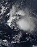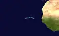 Casi al mismo tiempo que se disipó el sistema anterior, otra onda tropical se movió hacia la costa de África el 26 de agosto.[10] El 28 de agosto se formó como depresión tropical a unos 900 km (560 mi) al suroeste de Cabo Verde. Al desarrollarse, la depresión presentó una pequeña área de convección con una banda de lluvia en espiral, y el Centro Nacional de Huracanes (CNH) anticipó un fortalecimiento lento hasta alcanzar la categoría de tormenta tropical. Con una dorsal al norte, la depresión mantuvo una trayectoria general hacia el oeste.[38] Finalmente, la depresión no logró organizarse significativamente. Para el 29 de agosto, presentaba una circulación amplia y poco organizada, con solo convección dispersa.[39] Debido a las bajas temperaturas del agua, el sistema no pudo mantener una convección profunda [40]y el 31 de agosto la depresión degeneró en una onda tropical a unas 400 millas (640 km) al este de las Antillas Menores.[41]