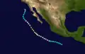 El 18 de octubre, una perturbación tropical se observó alrededor de 300 millas (485 kilómetros) al sur del Golfo de Tehuantepec . Hacia el oeste-noroeste, la perturbación se actualizó en una depresión. Después de girar al noroeste, la depresión se disipó una hora antes de trasladarse a tierra. Que dura menos de 24 horas, veintidós fue la tormenta de vida más corta de la temporada. A pesar de la falta de daños, 10 pulgadas (250 mm) de lluvia se midió a lo largo de porciones de la costa sur de México.
