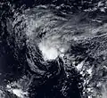 La tormenta tropical Narda luego comenzó a encontrarse con aguas ligeramente más cálidas, y así comenzó a restrengthen. A las 1800 UTC del 27 de septiembre, la APS-I anunció que Narda había recuperado la fuerza de tormenta tropical. Rápidamente se intensificó y comienzos del 29 de septiembre de un avión caza huracanes reportó vientos de 70 mph (115 km / h) y la formación de un ojo. En este momento, Narda se encuentra a unos 300 millas (485 km) al sureste de Hilo . Esa noche, la tormenta comienza a mostrar signos de debilitamiento como se vio al suroeste lejos del grupo de Hawái. El 30 de septiembre, sin embargo, Narda, con vientos de 50 mph (80 km / h), hizo su aproximación más cercana al Hawái, pasando de 150 millas (240 km) al sur de South Point . Después de una breve intensificar el 1 de octubre, de pronto se disipó horas después.